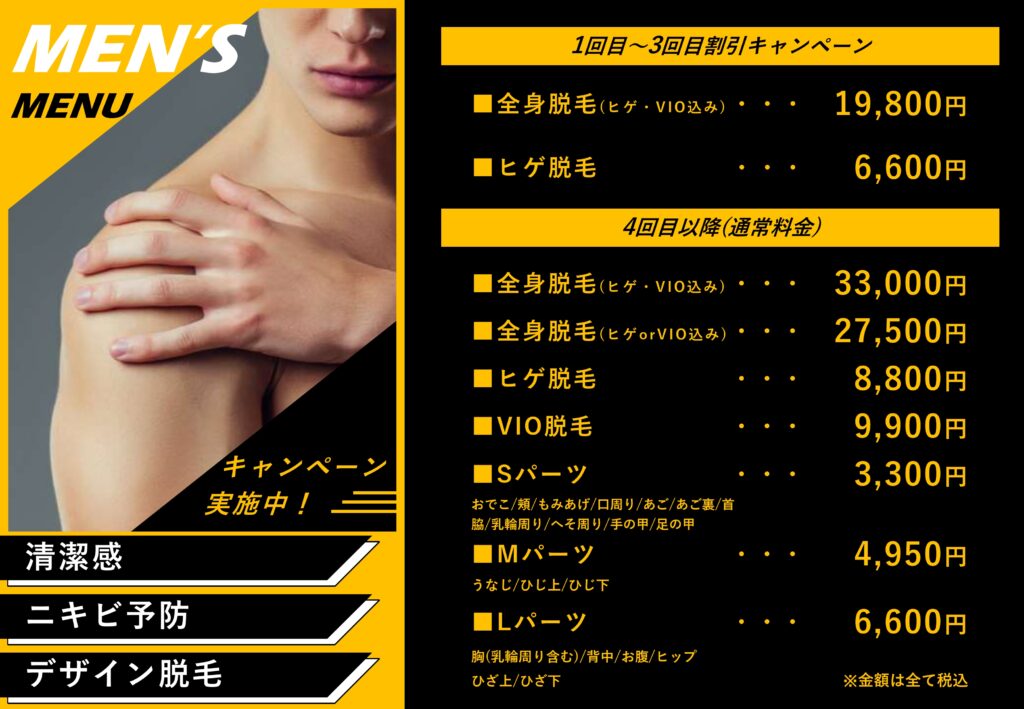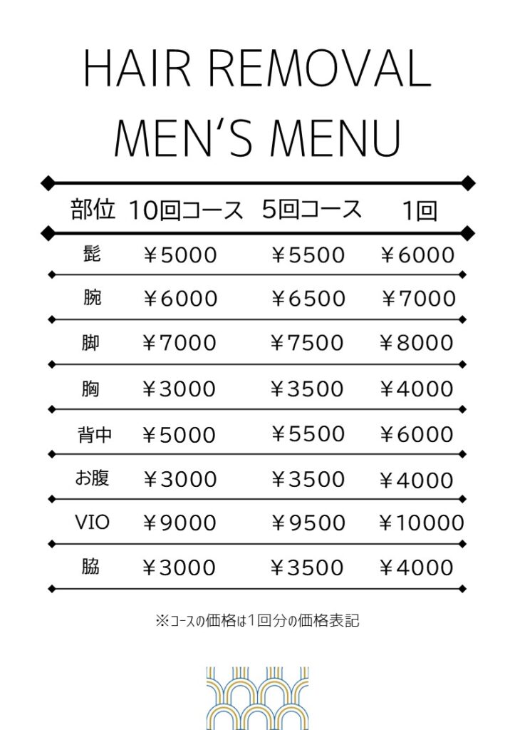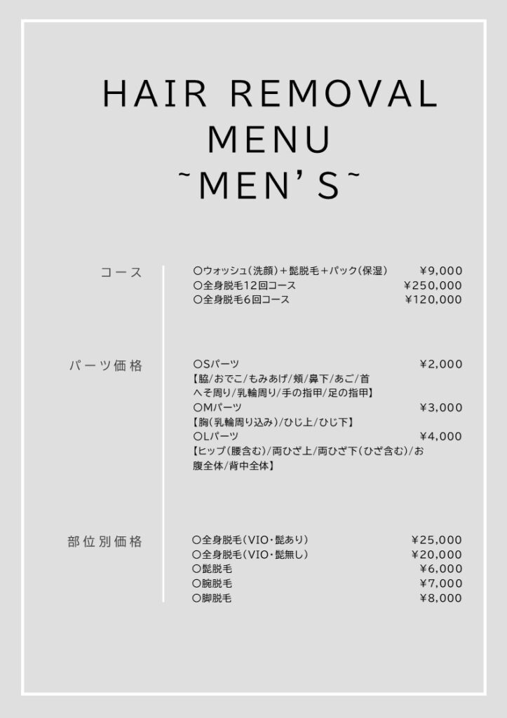 メンズコース メニュー表【編集可能】