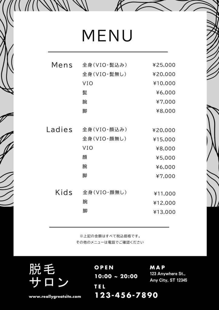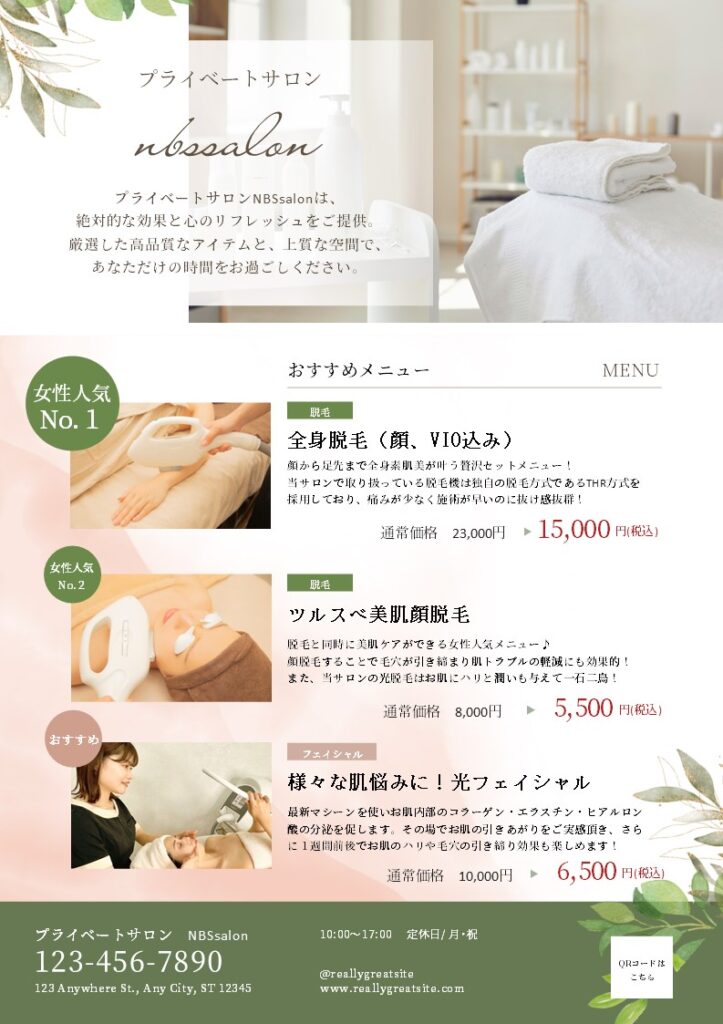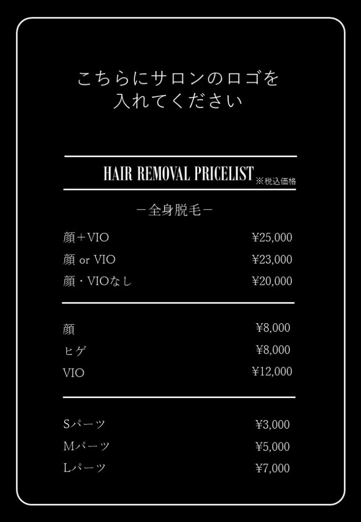 サロン様のメニュー表としてご利用いただけます。ダウンロード -