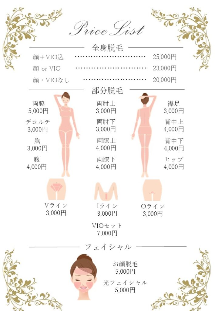 光フェイシャルメニュー表【編集可能】