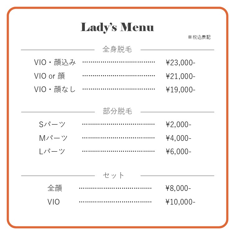 光フェイシャルメニュー表【参考資料】