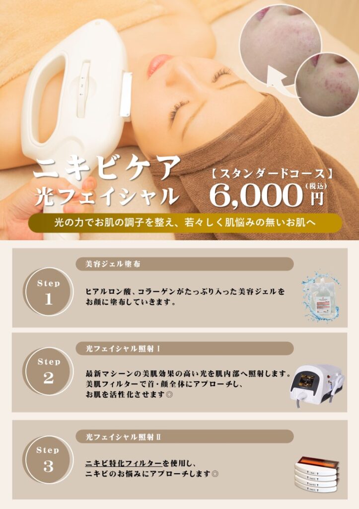 光フェイシャルメニュー表【ニキビ】【編集可能】