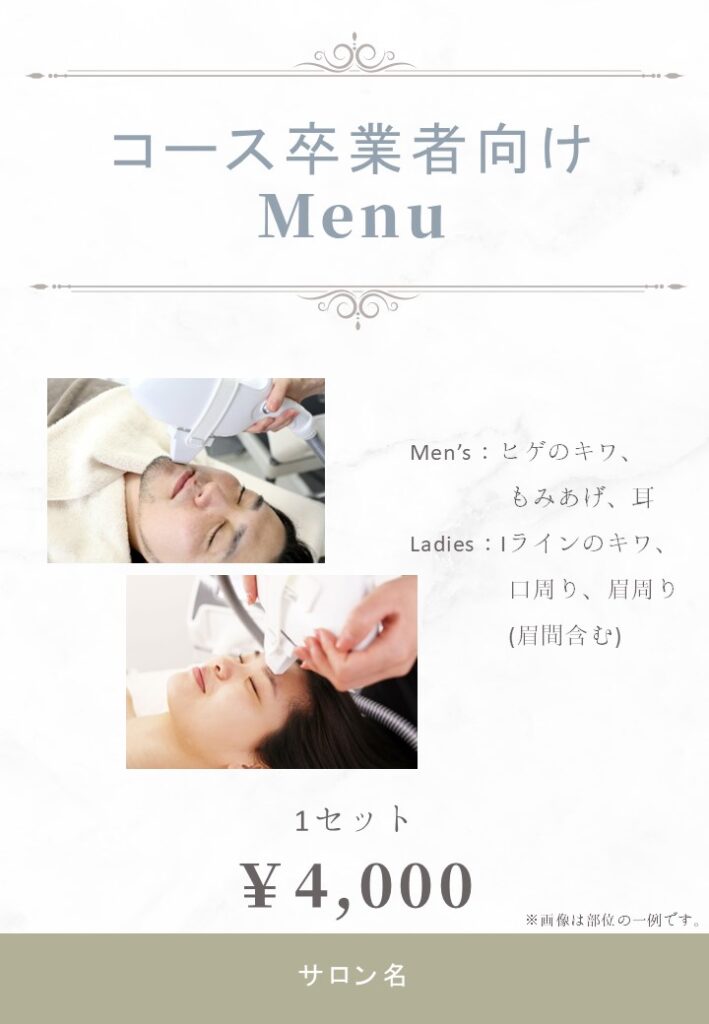 スポットケアコース卒業者向けコースメニュー表【編集可能】
