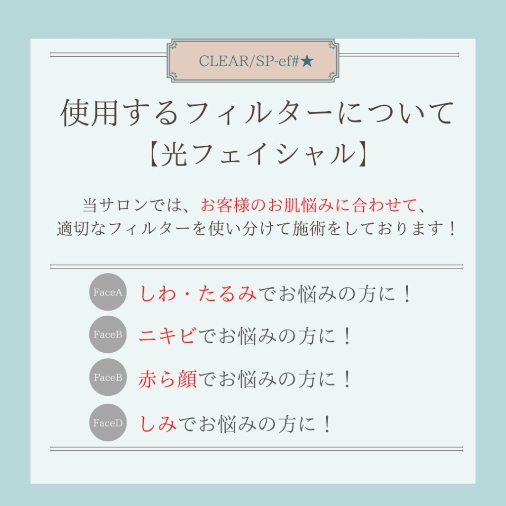 【提供素材】使用するフィルターについて(光フェイシャル)