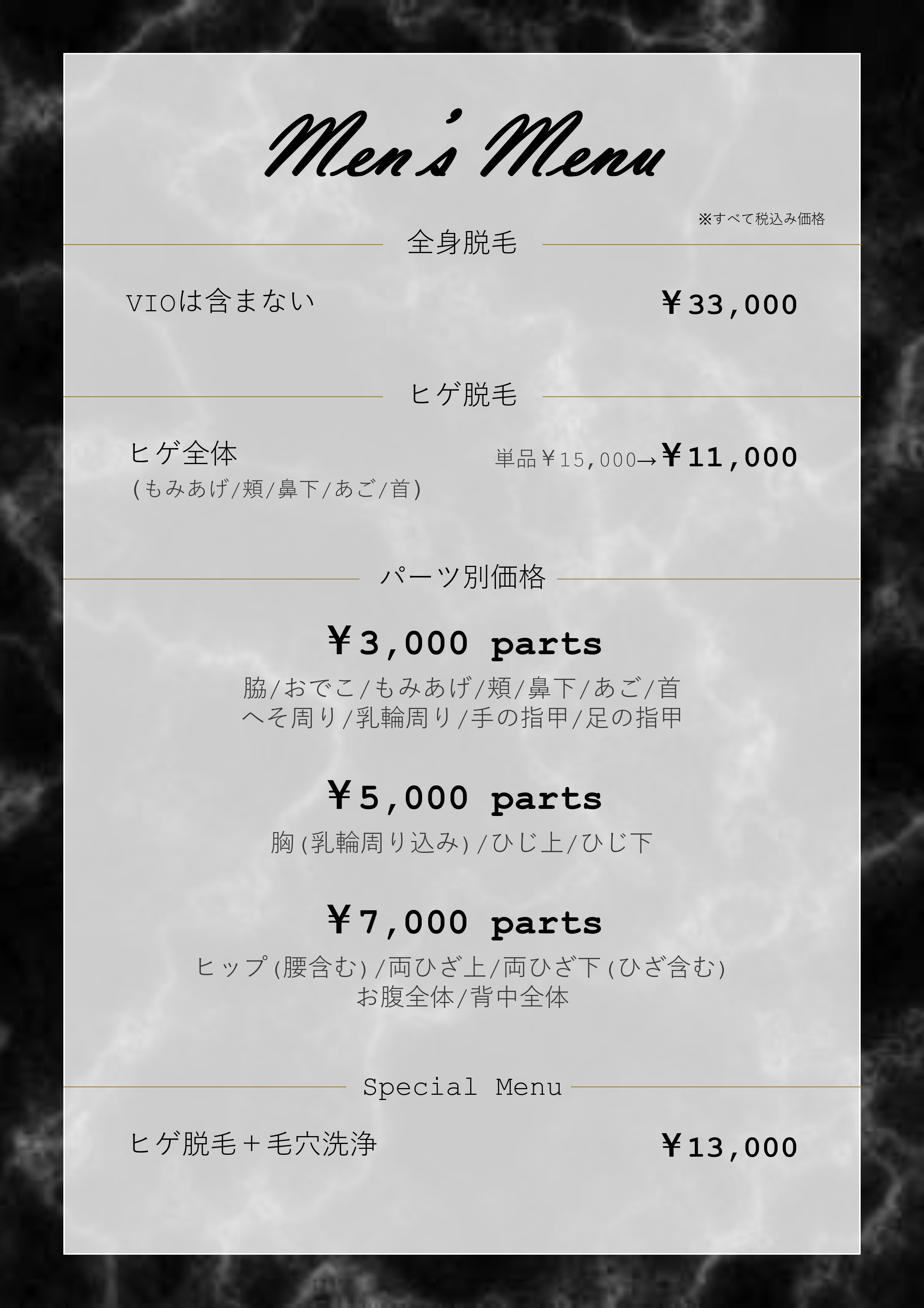 メンズメニュー表素材【編集可能】 2021 9/16 メニュー表 メンズ メンズメニュー 2021年9月16日2024年3月29日 【パワーポイント】サロンでのメンズメニュー表です。パワーポイントのデータで提供しています。メニュー表を作る際に編集してご利用いただけます。 ダウンロード メニュー表 メンズ メンズメニュー 関連記事 【メニューPOP】VIO光ピーリング脱毛 2025年8月13日2025年10月8日 夏の魅せ肌キャンペーンPOP【編集可能】 2025年5月17日2025年10月9日 テラサーキュラージェル×光フェイシャルメニューPOP【編集可能】 2025年4月3日2025年10月6日 プラズマ光フェイシャルメニューPOP【編集可能】 2025年2月21日 フラッシュクリームメニュー表【編集可能】 2025年2月21日 メンズメニュー表素材【編集可能】 2025年2月20日2025年2月21日 レディースメニュー表素材【編集可能】 2025年2月20日2025年2月21日 光フェイシャルメニュー表【編集可能】 2025年2月15日2025年7月25日