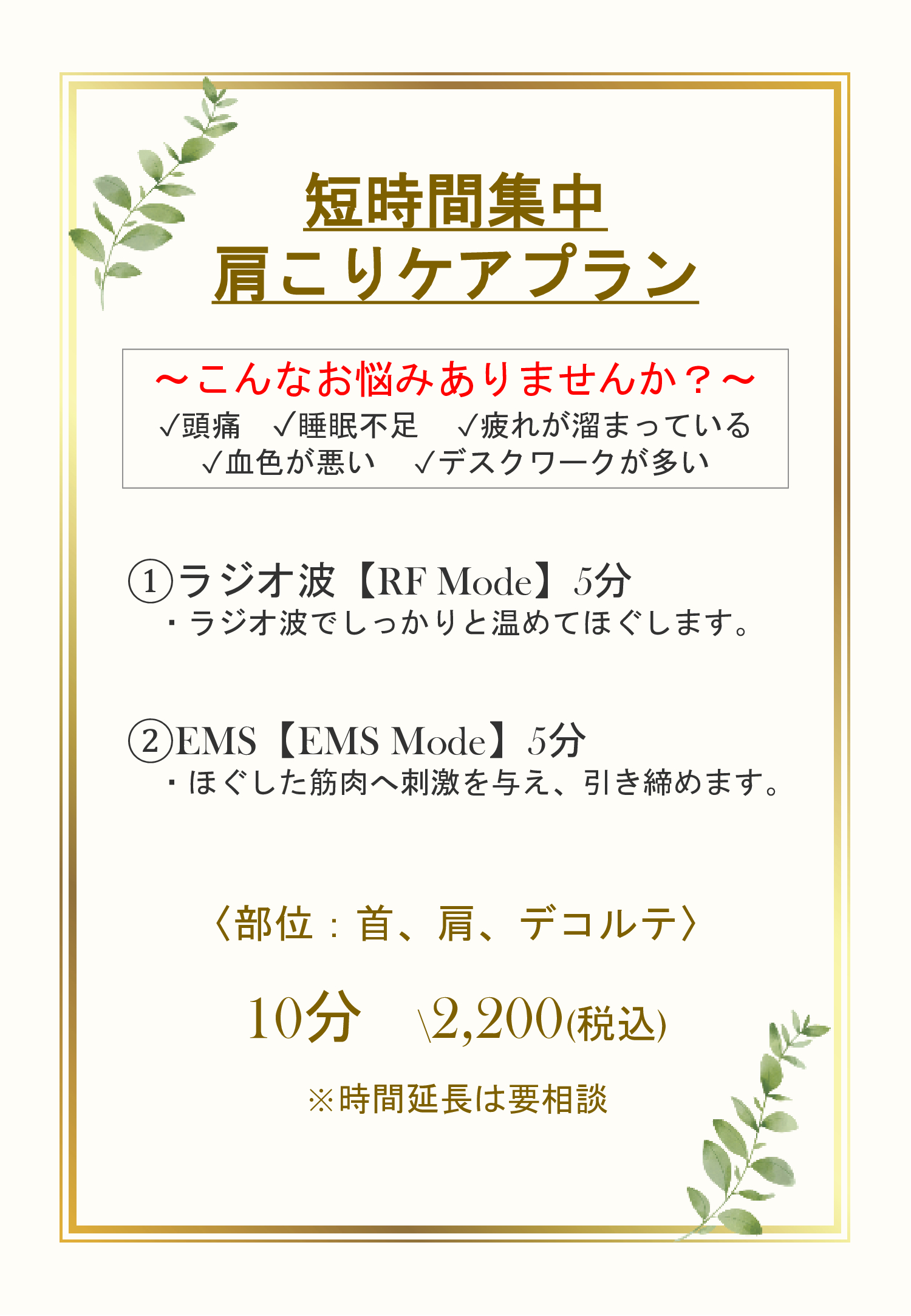 MetaLTメニュー表【編集可能】 2024 6/18 MetaLT 2024年6月18日 肩こりケア、ヘッド、フェイシャルのメニュー表です。メニューに取り入れる際、編集してご利用いただけます。 ダウンロード MetaLT 関連記事 MetaLTSKIN テクスチャー動画 2025年10月6日 MetaLTSKIN販促POP 2025年2月1日2025年2月7日 MetaLTメニュー表素材【編集可能】 2025年1月22日 【提供素材】MetaLT SNS用画像 2025年1月22日2025年2月5日 MetaLT SNS用販促画像 2024年9月21日2024年9月27日 【機能説明】TF MODE サーマルフラクショナル 2024年6月18日 ビフォーアフター 2024年6月18日 【機能説明】RF MODE ラジオ波 2024年6月18日