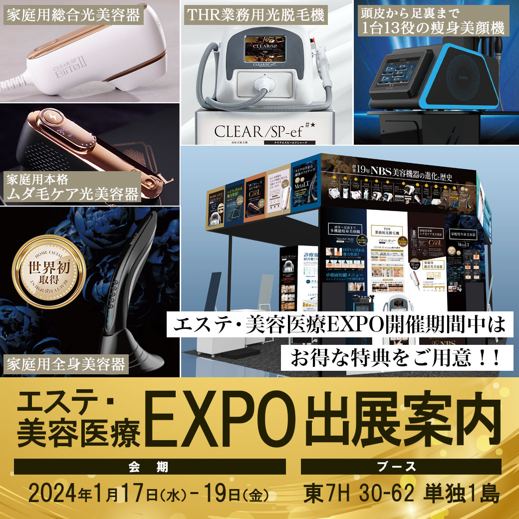 エステ・美容医療EXPO出展のお知らせ 2023 12/28 NEWS 2023年12月28日2024年9月9日 エステ・美容医療EXPO出展のお知らせ NEWS 関連記事 【年末年始休業のお知らせ】 2025年12月2日 【重要なお知らせ】SoftBankキャリアメール受信不具合について 2025年8月25日 【キャンペーン】VIO光ピーリング脱毛セット 2025年8月6日2025年10月23日 【夏季休業のお知らせ】 2025年7月31日2025年8月21日 【終売のご案内】CLEAR/SP BiiToⅡ デラックスセット 2025年5月19日 GW休業のお知らせ 2025年4月17日2025年6月27日 【豪華特典】BWJ東京2025出展のお知らせ 2025年4月9日2025年6月27日 「テラサーキュラージェル」が3月27日より販売開始! 2025年3月27日2025年6月27日