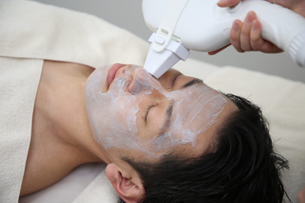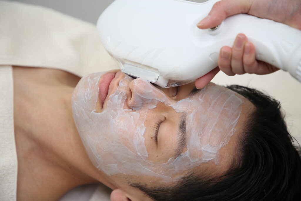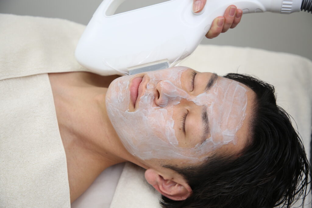 【提供素材】男性 フラッシュクリーム照射シーン(顔)