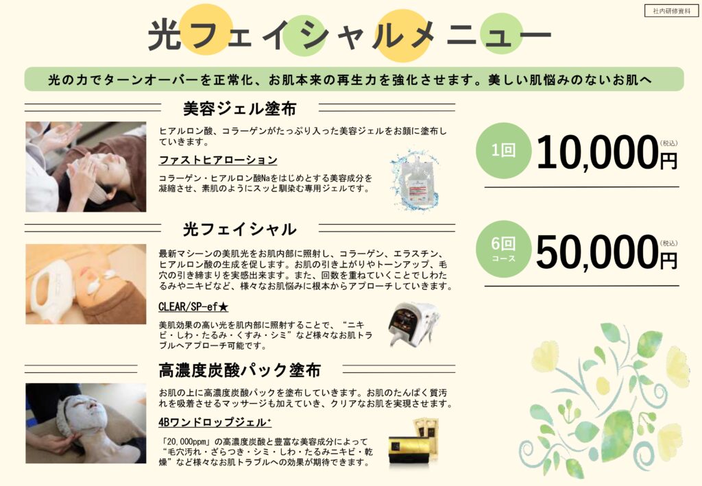 光フェイシャルとケア用品で極上の素肌に導きます。特別な日におすすめのメニューです。金額は編集可能です。ダウンロード -